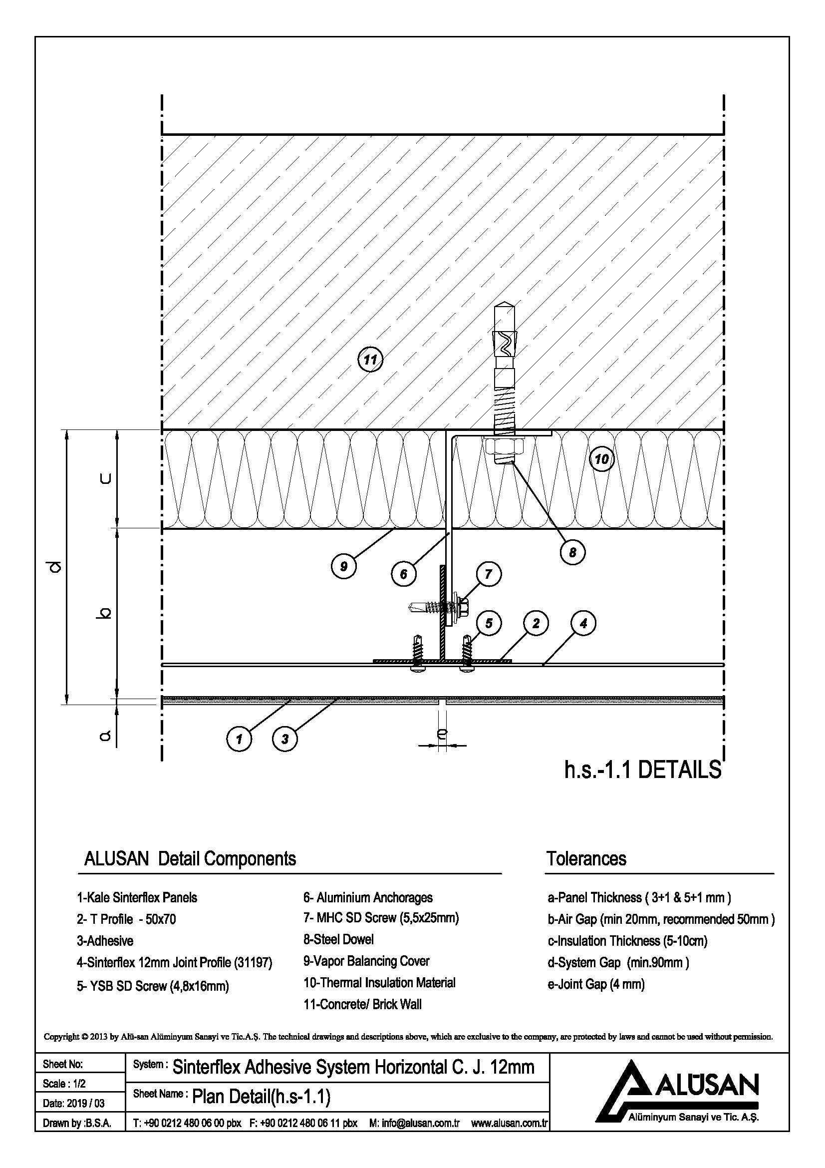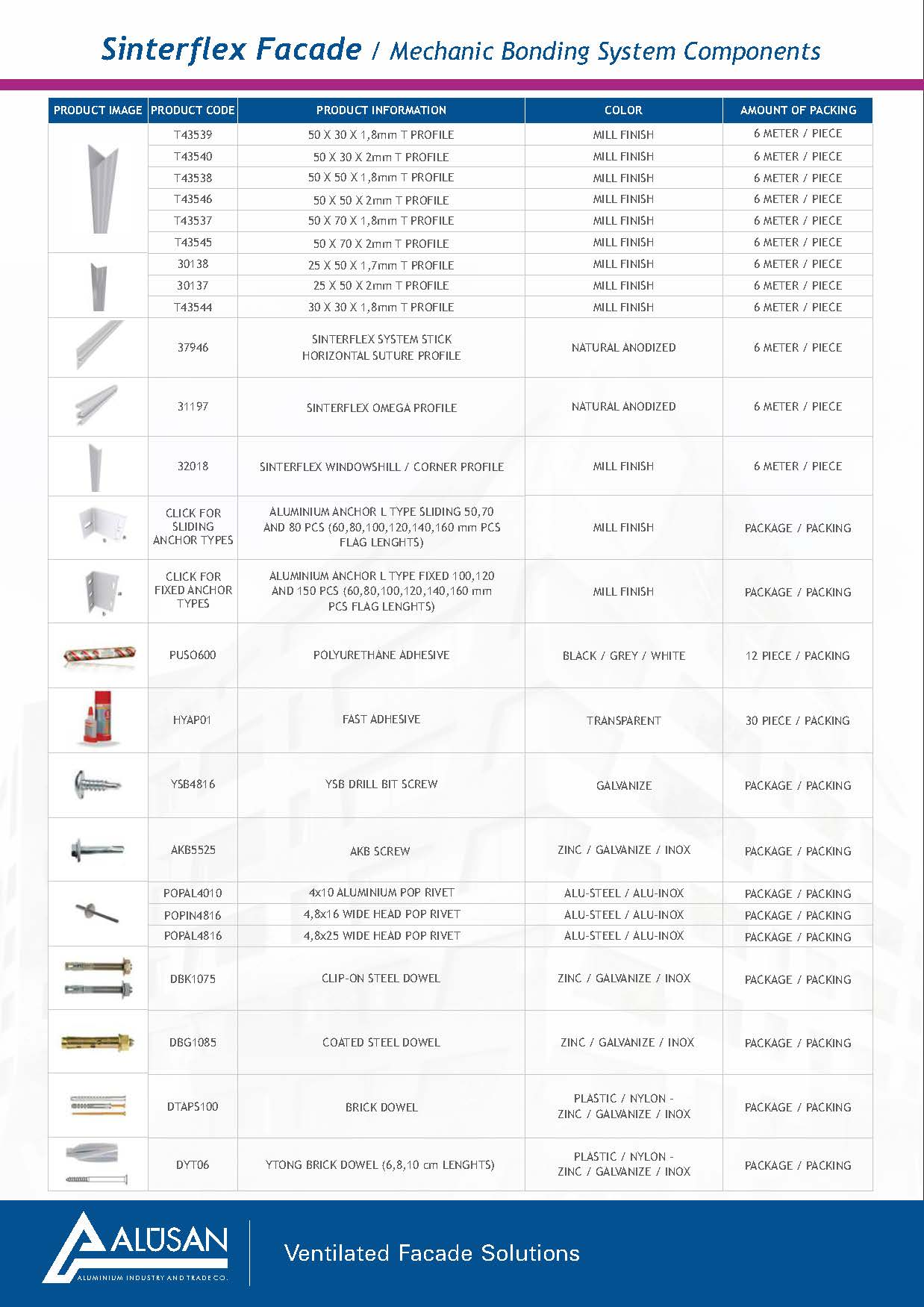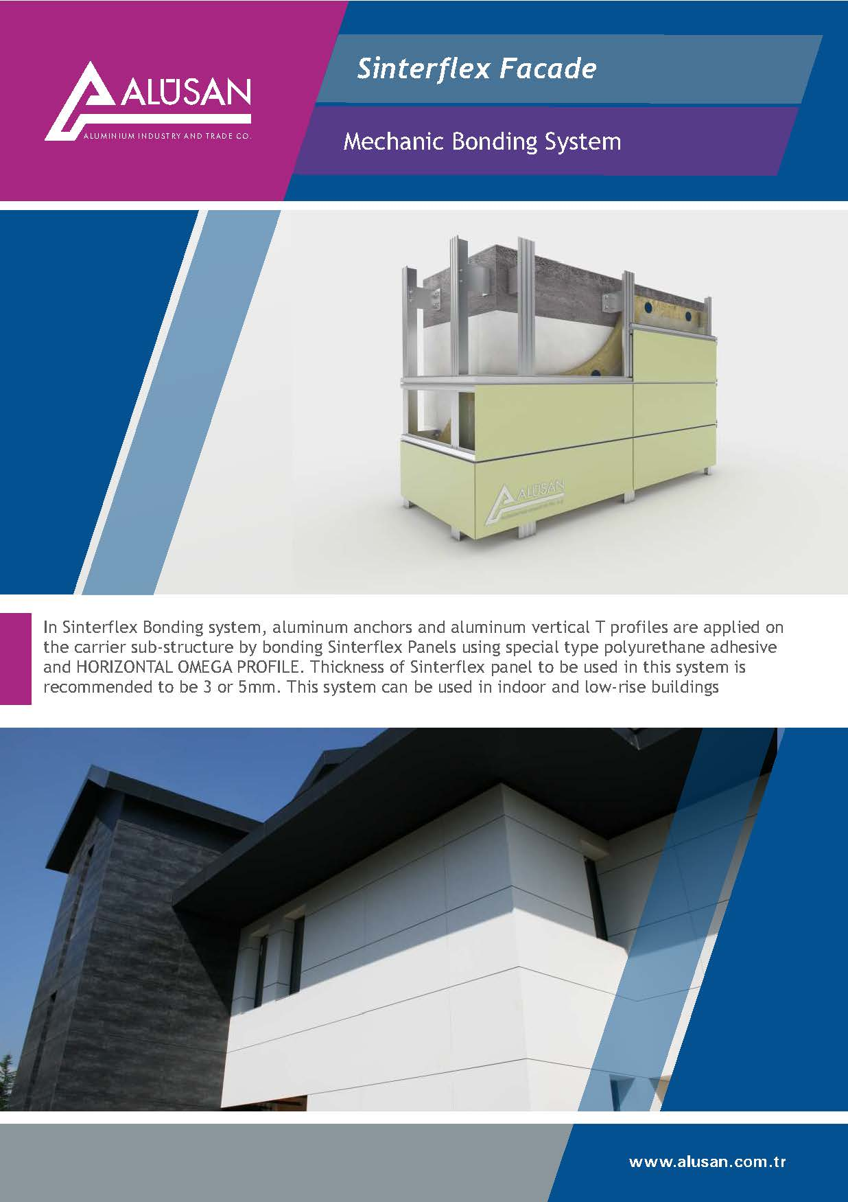 Sinterflex Stick System is applied by sticking Sinterflex Panels on the load-bearing base construction composed of aluminum anchorages and aluminum vertical T profiles using polyurethane adhesive and double-sided tape. Recommended thickness of the Sinterflex panels to be used in this system is 5mm.